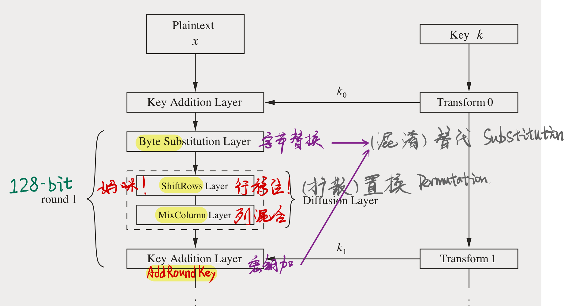 with round key; 【加盐】 - S-Box Substitution替换 (非线性运算) 【爆炒】
